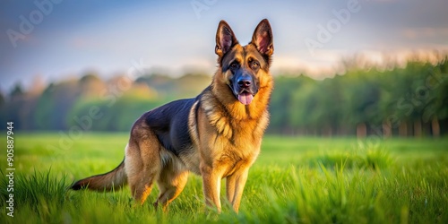 German shepherd dog standing in a grassy field, German shepherd, dog, pet, canine, loyal, intelligent, protective, purebred, breed
