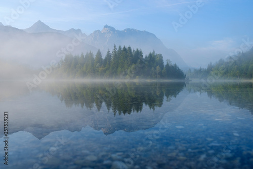 Germany, Bavaria, Werdenfelser Land, Isar dam Kruen, morning fog