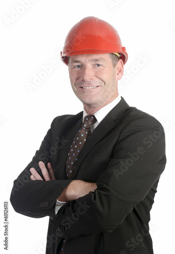 man, helmet, architect, site manager, businessman, engineer, business, ladder, suit, boss, boss, elegant, successful, businessman, confidence, manager, skill, contented, confident, friendly, male, smile, laugh, merry, happy, liability, constructor, hard hat, serene, optimistic, be glad, cravat, upright format, isolated, red, white, brown