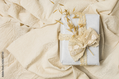 up high, anniversary, background, bed, bedding, birthday, bow, box, cardboard, celebration, christmas, clothes, creased, crop, crushed, decor, decoration, decorative, design, elevated, event, fabric, festival, gift, grain, greeting, high, indoor, lace, nobody, object, occasion, ornament, overhead, package, present, ribbon, still, surprise, textile, tied, wallpaper, wedding, wrapped, wrapping, wrinkle