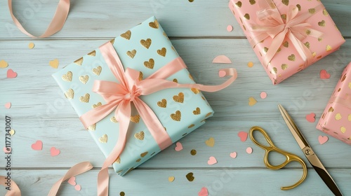 gift wrapping, craft, scissors, ribbon, celebration, present