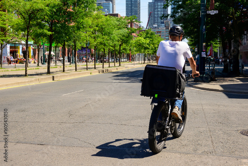 Gig Economy Bicycle Courier on a Summer Day in Downtown Toronto