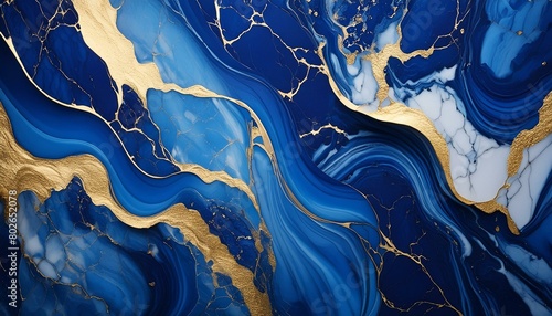 Gilded Serenity: Blue Marble with Gold Accents Wallpaper