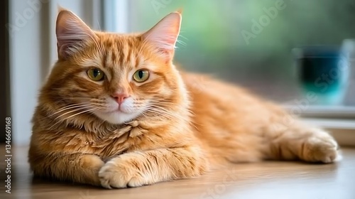 Ginger Cat Relaxing by Window.