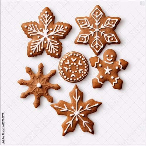 Gingerbread christmas snowflake star santa man tree cookie biscuit on transparent background cutout