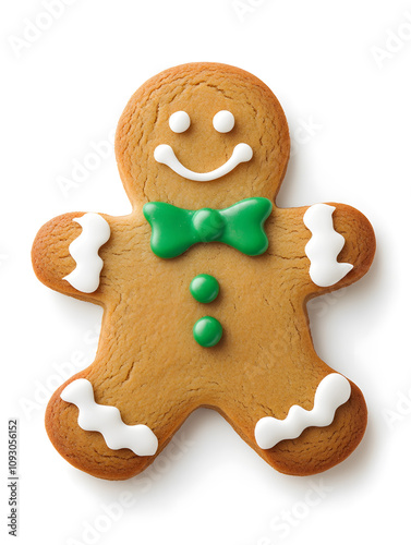 Gingerbread man Christmas cookie, isolated on white background
