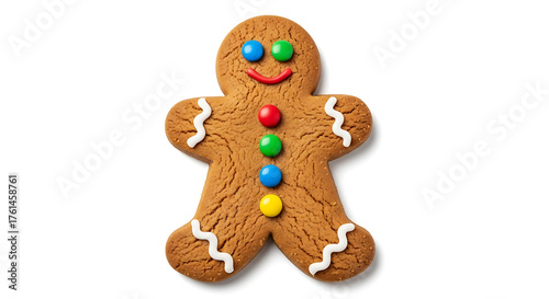 gingerbread, cookie, man, food, sweet, candy, buttons, icing, white, red, blue, green, yellow, brown, baked, treat, holiday, christmas, festive, dessert, isolated, object, shape, cute, edible