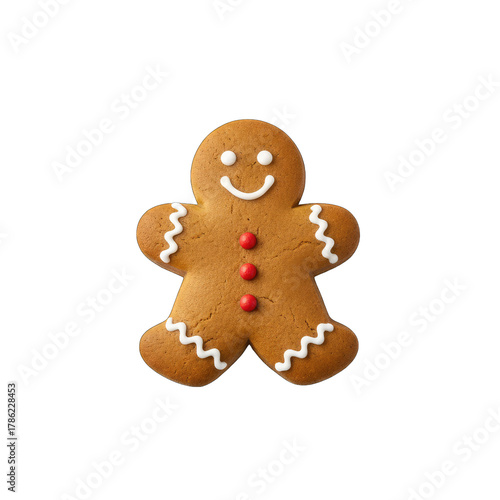 gingerbread, cookie, man, christmas, holiday, baking, sweet, dessert, food, treat, icing, white, red, candy, buttons, smiling, happy, cute, traditional, baked, snack, bakery, sugar, pastry, confectionery, festive, decoration, isolated, studio, shot, macro, detail, texture, cut-out, background, black, delicious, homemade, party, fun