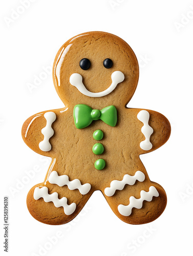 Gingerbread Man on white background for holidays, baking or dessert recipes and festive decoration