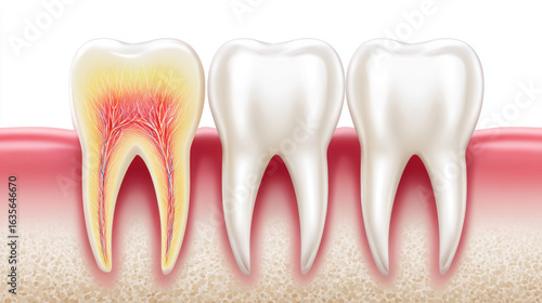 teeth, dental, gum, inflammation, gingivitis, swollen, root, cross section, nerve, infection, oral, anatomy, three-dimensional, render, clinic, treatment, disease, medicals, health care, pain, redness, swelling, closeup, cavity, hygiene, molar, plaque, teeth, dentistry, dentist, sensitivity, health, microscope, mouth, human, science, biology, pathology