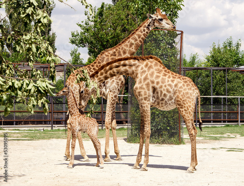 family, giraffe, animal, zoo, group, pet, mammal, tall, mother, spot, nature, wildlife, tree, neck, park, conservation, pair, new, fur, captivity, offspring, father, hide, love, cute, contentment, three, zoo, african, long, skin, children, baby