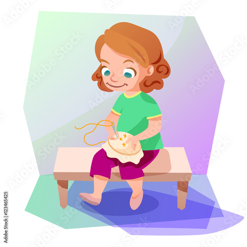 vector, children, girl, children, baby, children, little, small, paint, art, artist, painter, brush, picture, cute, adorable, hobby, sky, creation, cartoon, colourful, high-coloured, bright, happy, smile, face, human, people, person, female, image, funny, sitting, diligent, studious, fun, young, training, study, learning, cross, stitch, sew, embroidery, needlecraft