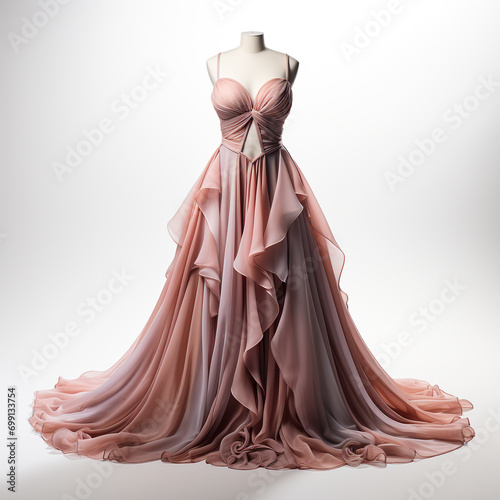 Girl gown fashion design on white background. Long, elegant and minimalistic.
