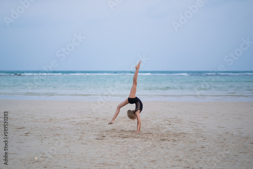beach, woman, sea, summer, sand, jump, ocean, sky, fun, water, people, freedom, vacation, travel, fitness, nature, bikini, lifestyle, leisure, holiday, joy, coast, happiness, active, young, body, healthy, beautiful, girl, female, happy, sport, person, exercise, energy, jumping