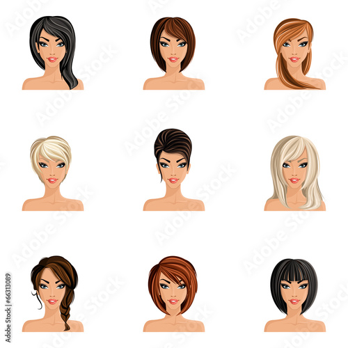 girl, female, business, icon, set, cyberspace, collection, pictogram, signs, symbol, computer, mobile, phone, hair, cute, face, colours, coiffure, head, pretty, haircut, brunette, website, web, site, technology, user, interface, element, design, style, lifestyle, woman, beauty, beautiful, young, attractive, people, person, character, concept, scene, adult, avatar, mascot, portrait, isolated, illustration, vector