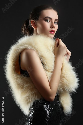 adult, attractive, background, beautiful, beauty, black, caucasian, charming, clothing, coat, dress, elegant, emotion, fashion, female, fur, girl, glamour, hair, coiffure, human, indoor, lady, model, 1, people, honed, person, posing, pretty, serious, studio, style, teenage, white, woman, young