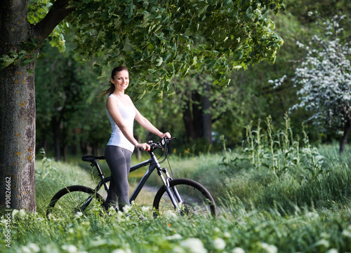 woman, spring, ride, bicycle, grass, walk, bike, green, portrait, cycle, adult, attractive, people, person, human, outdoors, outside, summer, pretty, lady, girl, happy, caucasian, female, young, bicyclist, cross, road, leisure, rural, journey, country, nature, terrain, vacation, holiday, weekend, activity, active, sport, trail, adventure, lifestyle, healthy, countryside, tree, park, forest, wood, sunny