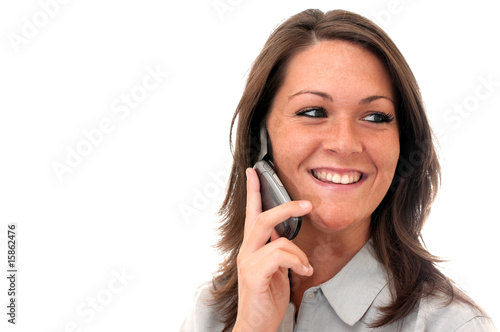 girl, female, mobile phone, phone, cellular, phone, pretty, cute, beautiful, brunette, talking, communicate, communicating, smile, smiling, looking, away, toothy, isolated, white, background, person, mobile, lifestyle, technology, happy, conversation, call, talk, teenage, youth, calling, teenage, attractive, cheerful, expression, friendly, fun, happiness, joyful, leisure, model, portrait, wireless, woman
