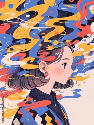 thought, girl, abstract, colourful, mind, creative, imagination, idea, art, design, thinking, woman, portrait, expression, emotion, psychology, concept, inspiration, dream, fantasy, colours, head, brain, mental, visual, illustration, drawing, painting, style, pattern, background, graphic, digital, contemporary, modern, youth, female, person, face, hair, profile, fashion, beauty, trendy, lifestyle, calm, peaceful
