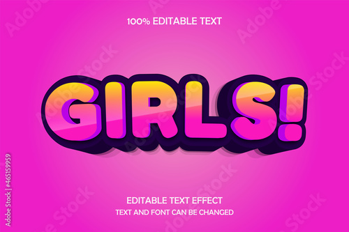 Girls 3 dimension editable text effect modern style
