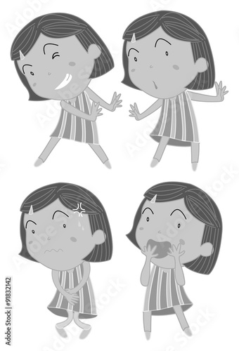 children, girl, girl, isolated, on white, white, white background, set, series, collection, group, many, action, emotion, playful, surprised, nervous, shocked, scared, sweating, illustration, graphic, picture, clip art, clip art, clip, art, background, drawing, image, cartoon, grey, grey, greyscale, greyscale, children, children, children, young, teenage, student, pupil, vector