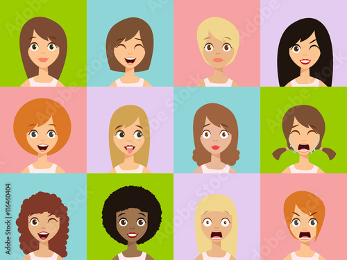 Girls Emotion Icons. Woman Emotions Expression Icons.