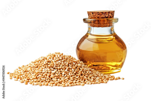 sesame, seed, oil, bottle, cooking, ingredient, health, nourishment, liquid, natural, food, condiment, favor, culinary, epicure, cookery, heap, pile, cork, container, glasses, brown, beige, isolated, black, background, macro, closeup, detail, alimentary, diet, vegan, vegetarian, raw, organic, freshness, healthy, grain, crop, plant, agriculture, harvest, season, autumn, market, farm, produce, rural