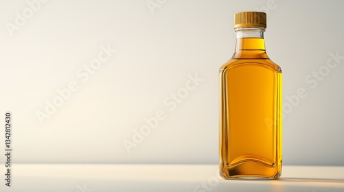 bottle, glasses, liquid, oil, amber, gold, yellow, transparent, container, product, cardboard box, design, studio, light, clean, edible, food, beverage, healthy, alimentary, organic, eatery, modern, realistic, three-dimensional, rendering, closeup, isolated, empty, shelf, display, essential