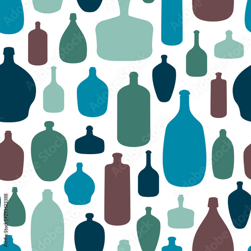 Glass bottles. Vector seamless ornament. Minimalistic style.