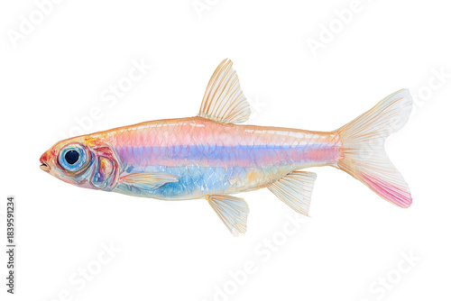 Glass Catfish hand drawn watercolor painting of a transparent fish