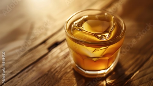 Glass cup filled with caramel colored liquid