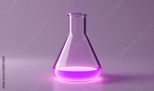 Glass Erlenmeyer flask with purple liquid on purple background.