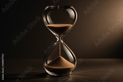 Glass hourglass with sand. Use for time, business deadlines, life, and productivity marketing.
