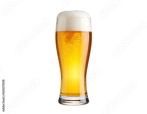 Glass of beer with foam isolated on transparent background.