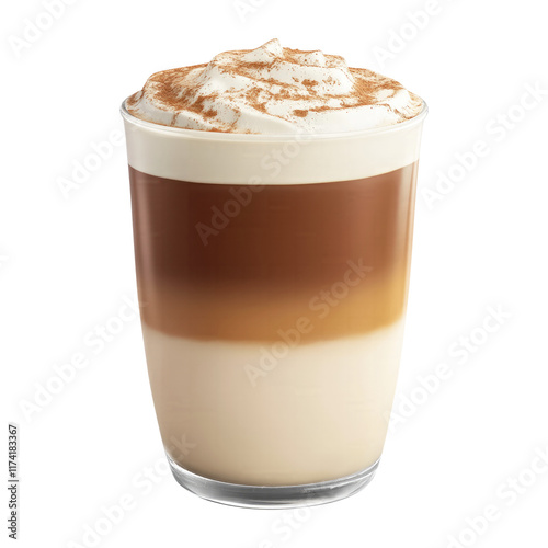 glass of cappuccino with milk foam isolated on transparent white background, clipping path