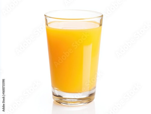 Glass of Fresh Orange Juice on Clean White Background
