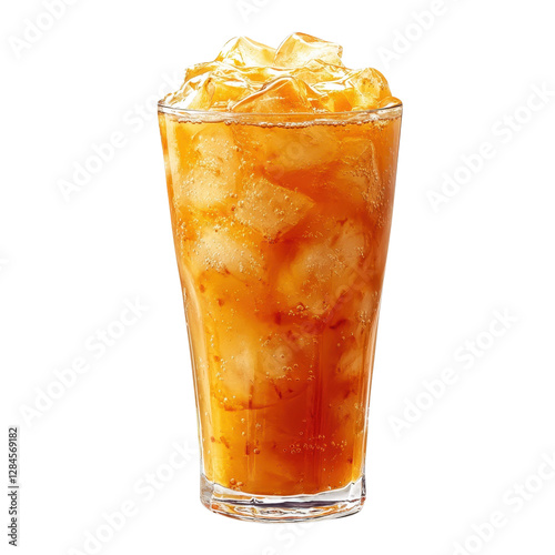 glass of Iced thai tea png isolated on a white transparent background