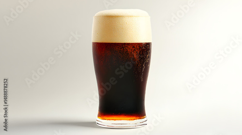 Glass of light beer with foam head. Watercolor illustration on white background. Alcoholic beverage in pint glass. Bar and pub drink concept