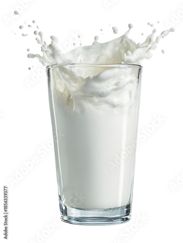 Glass of milk splashing isolated on transparent background