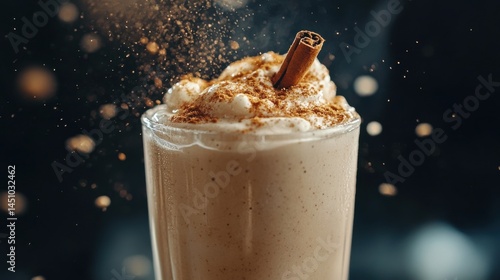 Glass of vanilla protein shake with cinnamon sprinkles
