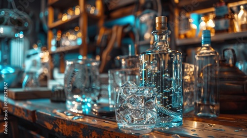 glasses, water, ice cube, bar, counter, beverage, nightlife, drink, refreshing, cool, transparent, liquid, cold, pub, relaxation, ambience, clear, condensation, crystal, hydratation, quench, drinking, leisure, sparkling, glacé, cooling