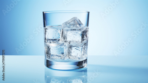 Glass of water with ice on the blue background.