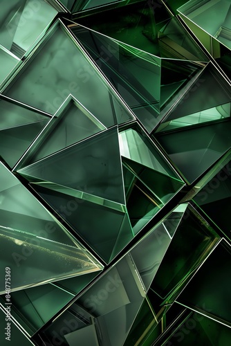 glass tangram background abstract architectural very dark green gradients, for mobile phone background, aspect ratio 2:3