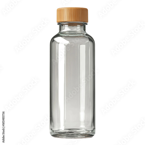 glass water bottle with bamboo cap, eco-friendly style, isolated on white background. PNG