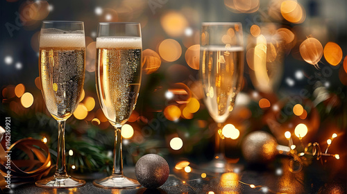 glasses of champagne on christmas background