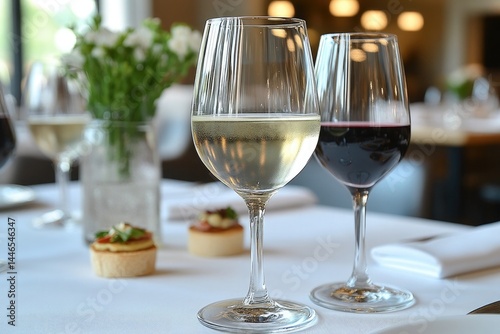 wine, glasses, table, eatery, drink, alcohol, champaign, goggles, wine glass, celebration, dinner, white, wedding, red, crystal, party, food, empty, beverage, holiday, water, cafes, setting, elegance, dining