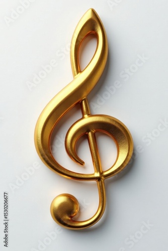 Gleaming gold treble clef rests on pristine white background, object, photography