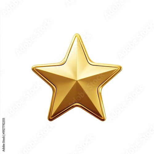 Gleaming golden five-pointed star icon with beveled edges against a pristine white backdrop