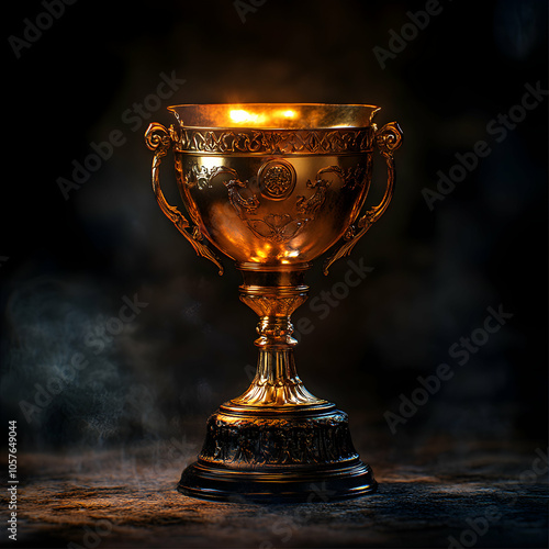 Gleaming Golden Trophy Illuminated in Spotlight Against Dark Background