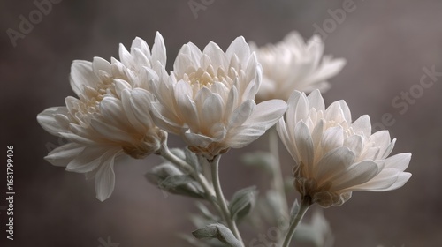 Glistening ivory chrysanthemums whisper autumn equinox, ancestral remembrance, ethereal tranquility, celebrating Hanami's serene floral meditation